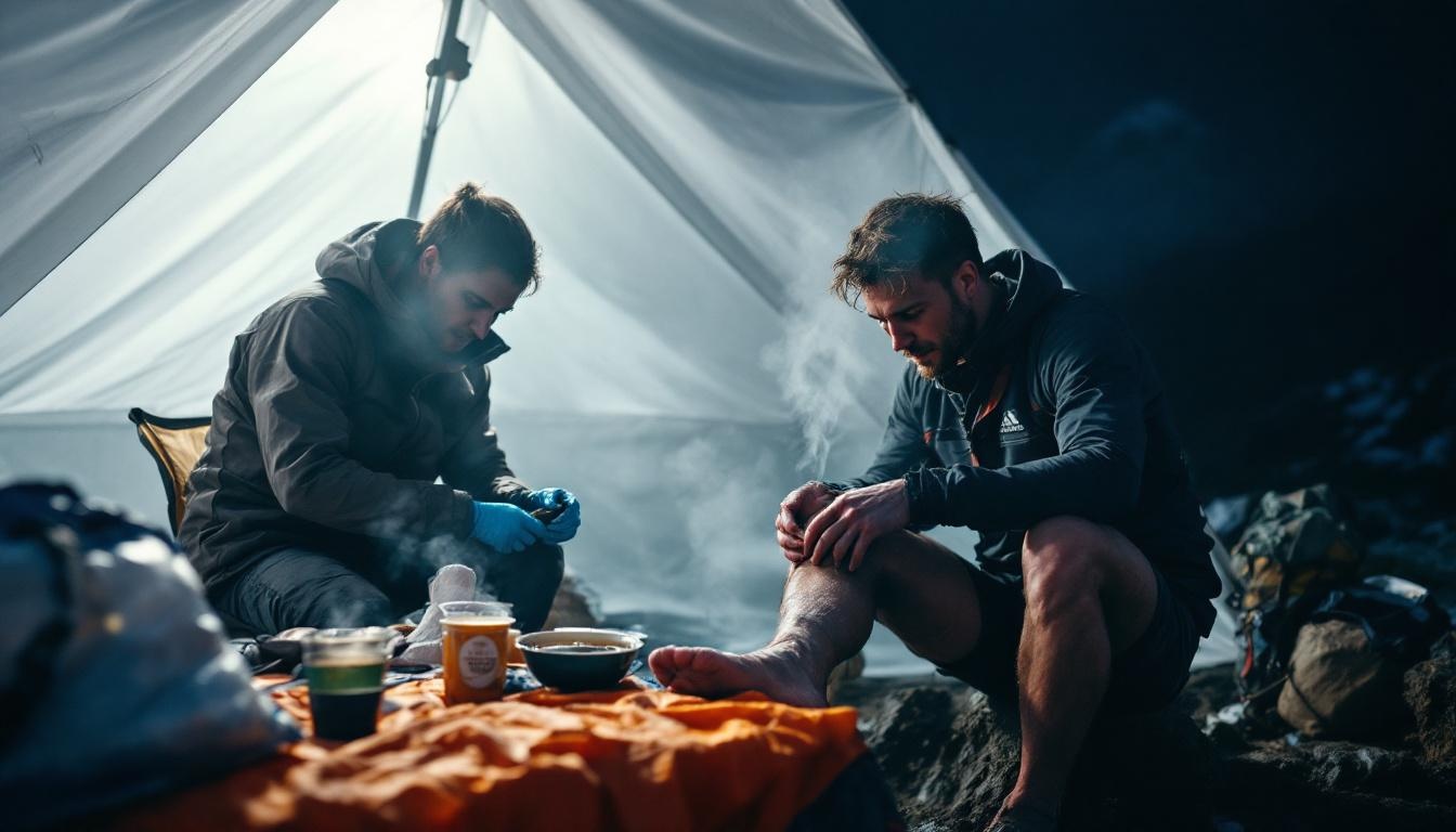 L'intervention au ravito obéit à une logique contre-intuitive : le temps investi à traiter correctement un pied au kilomètre 70 est toujours rentabilisé sur les 50 suivants. Déchausser. Sécher intégralement, y compris entre les orteils. Changer de chaussettes, pas simplement les retourner. Inspecter, même si rien ne fait mal : une zone rouge se traite en trente secondes, une phlyctène ouverte en quinze minutes.
