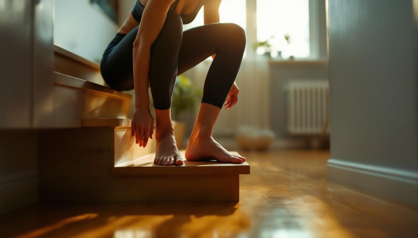 Le pilier thérapeutique actuel reste le protocole de renforcement excentrique décrit par Alfredson à la fin des années 1990 et largement confirmé depuis. Il consiste à réaliser trois séries de quinze répétitions de descente lente sur le bord d'une marche, genou tendu puis genou fléchi, deux fois par jour, pendant plusieurs semaines. La douleur modérée pendant l'exercice est autorisée, voire recherchée : c'est la contrainte mécanique qui stimule la réorganisation des fibres collagènes. Pour les tendinopathies insertionnelles, on limite la descente du talon sous le niveau de la marche afin de ne pas comprimer la zone d'insertion.